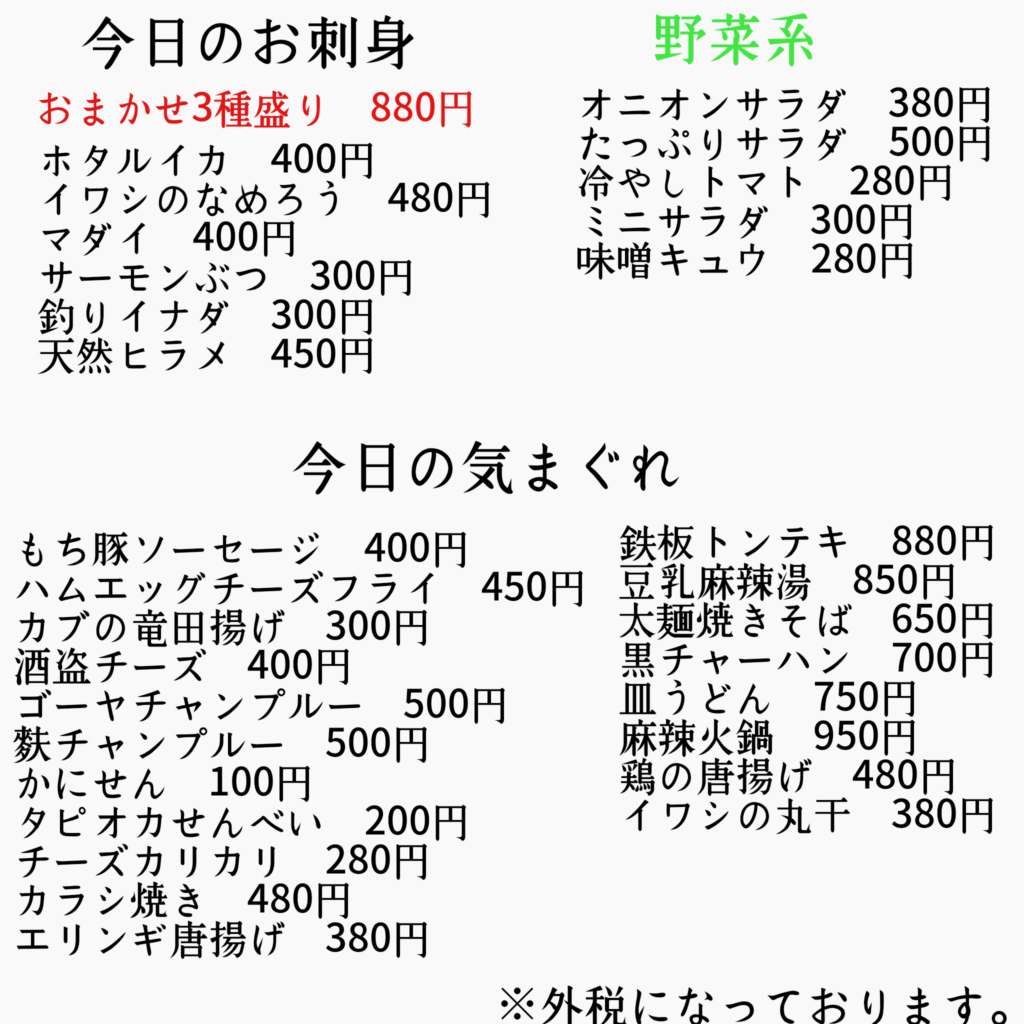 本日のメニュー