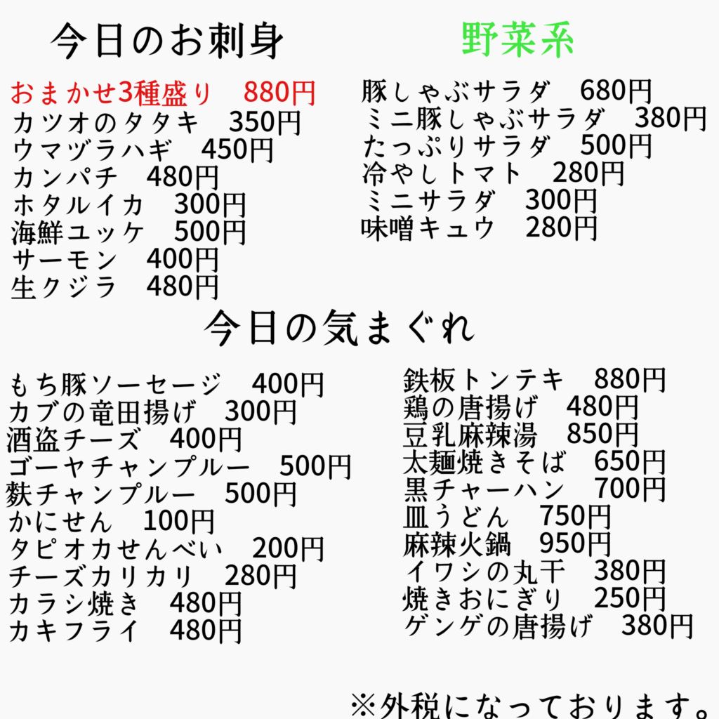本日のメニュー