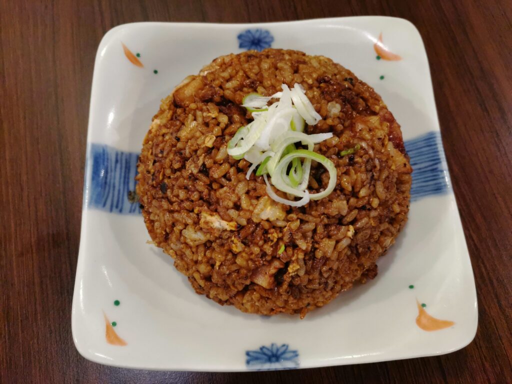 ご飯ものは黒チャーハンあります、中国醤油で炒めたニンニクの香るコクのある黒いチャーハンになってます。